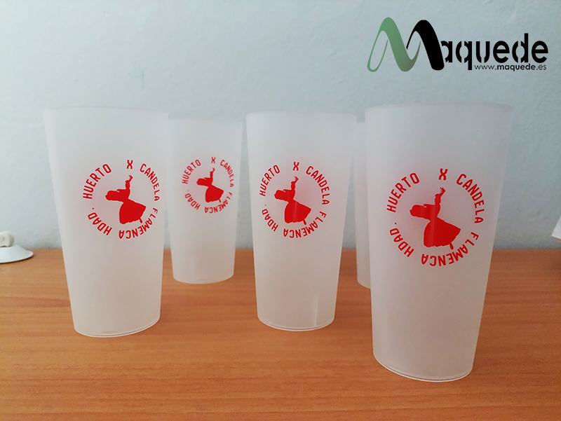La pasada semana entregamos 1.600 vasos de plástico como estos para la Hermandad del Huerto de Puente Genil. Personalizados a dos caras y a una tinta. Vasos resistentes, ideales para verbenas y fiestas.